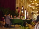 ウイーン市庁舎の大会議場。この場で決勝戦、表彰式が行われました。気分はまるで、貴族のよう。我々が到着した時は、まだそんなに人だかりもなく、壇上から一番近い席を陣取ってしまいました。 |